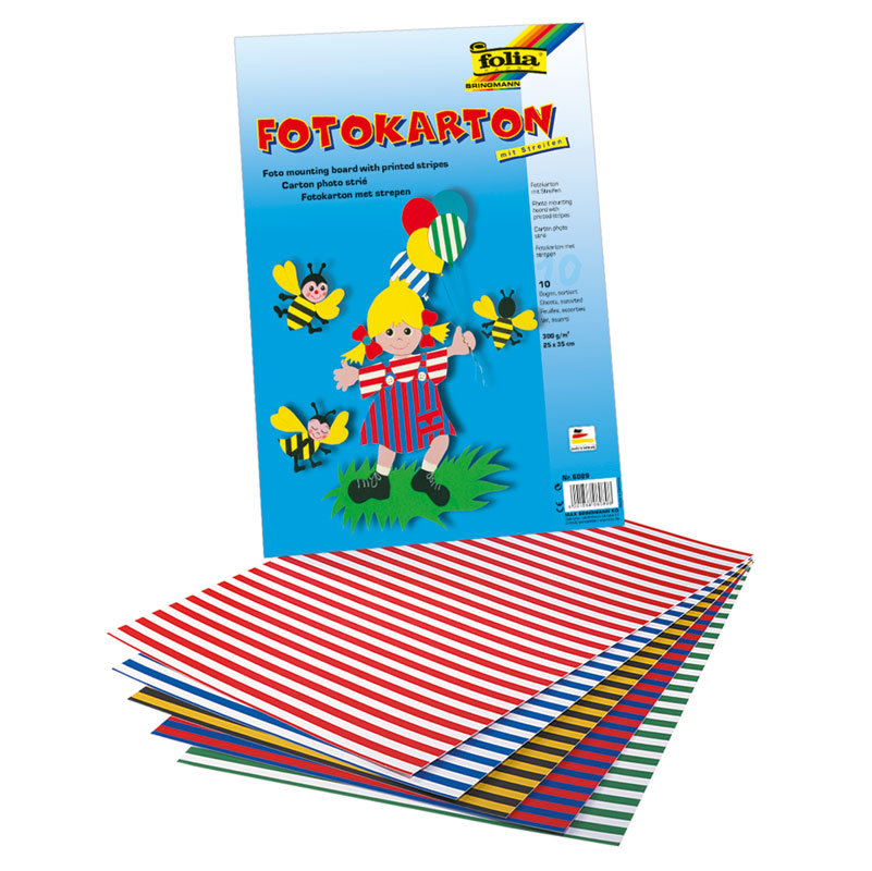Fotokarton 25 x 35 cm, 10 Stück — Streifen sortiert