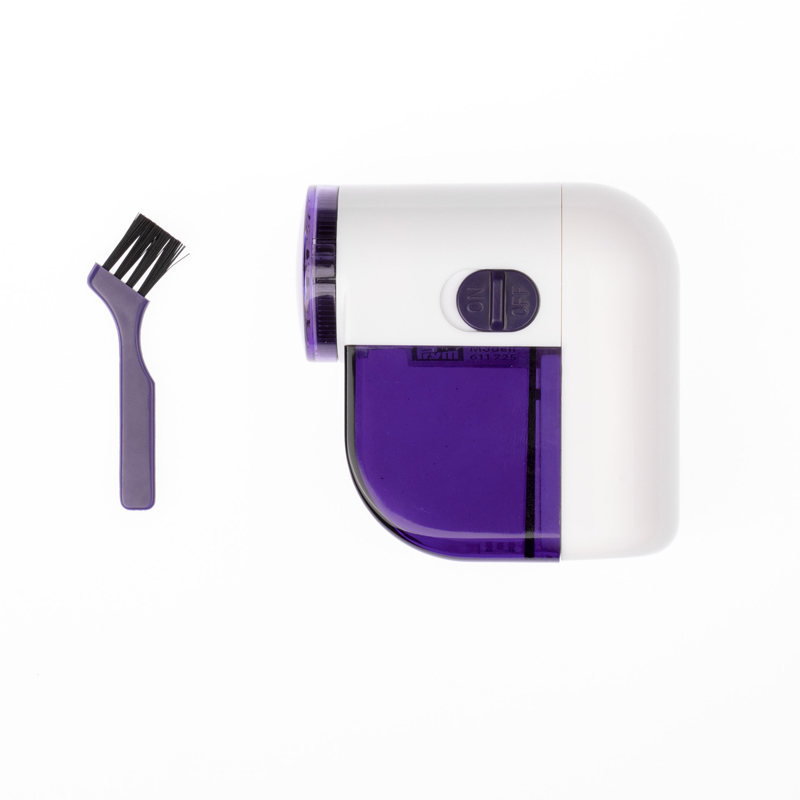 Der batteriebetriebene Fusselrasierer im Kleinformat sorgt dafür, dass Wollkleidung im Handumdrehen wie neu aussieht. Der Schereneinsatz mit drei scharfen Klingen dreht sich im Scherkopf, rasiert hervorstehende Fussel sauber ab, und sammelt sie im halb-transparenten Auffangbehälter. Das Gerät lässt sich zum Säubern ganz leicht demontieren und mit der beiliegenden Bürste reinigen.