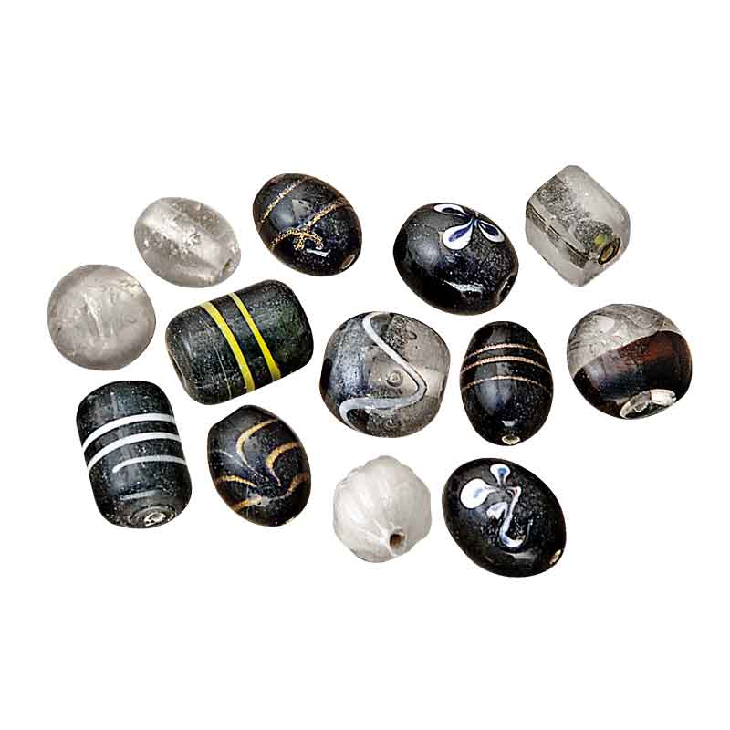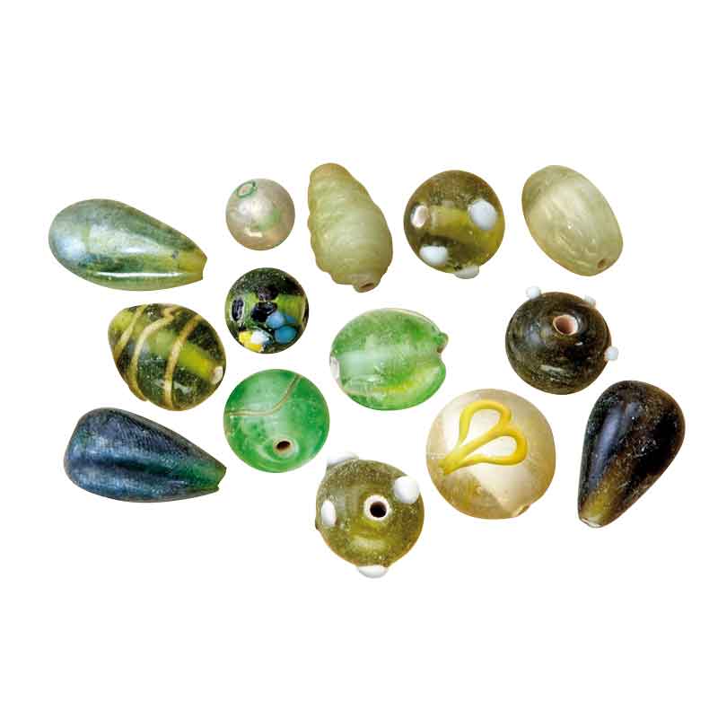 Glasperlen in unterschiedlichen Größen und Formen