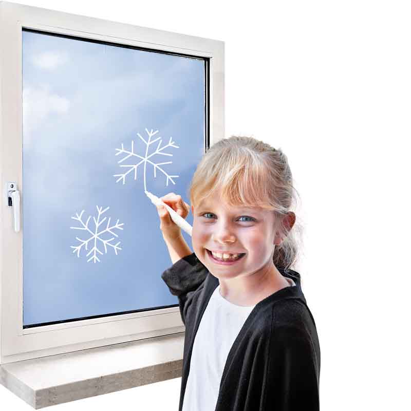 - Zum Beschriften und Gestalten von fast allen glatten Flächen wie Tafelfolie, Glas etc.