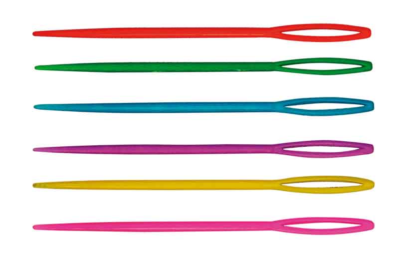 Farbige elastische Kunststoffnadeln ohne Spitze. Gut geeignet für Kindergarten und Förderschule.