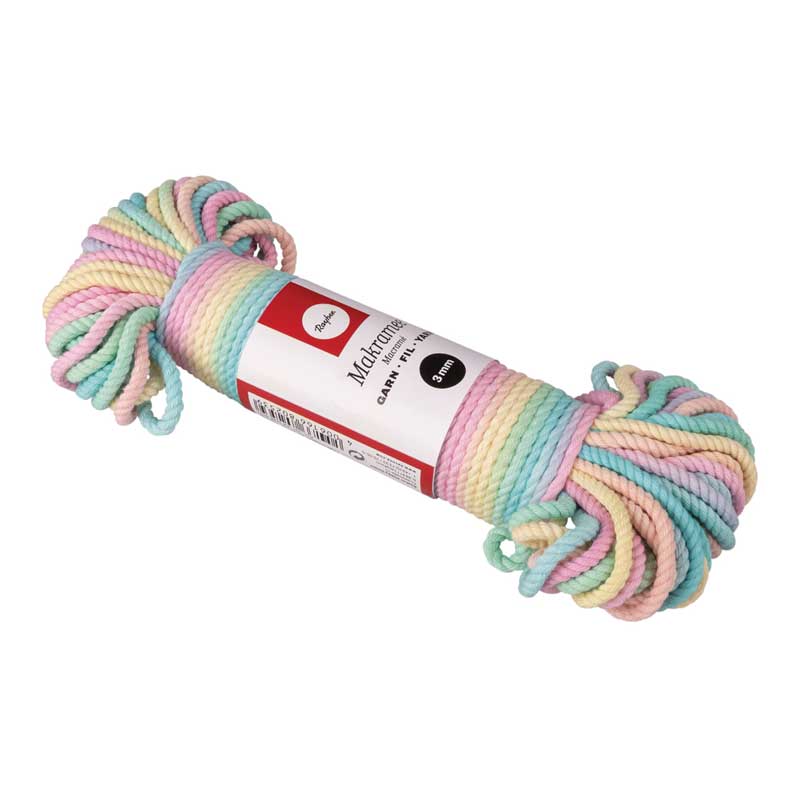 Makramee Garn 3 mm, ca. 30 m — regenbogen pastell