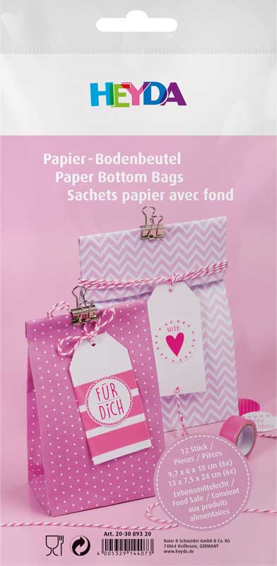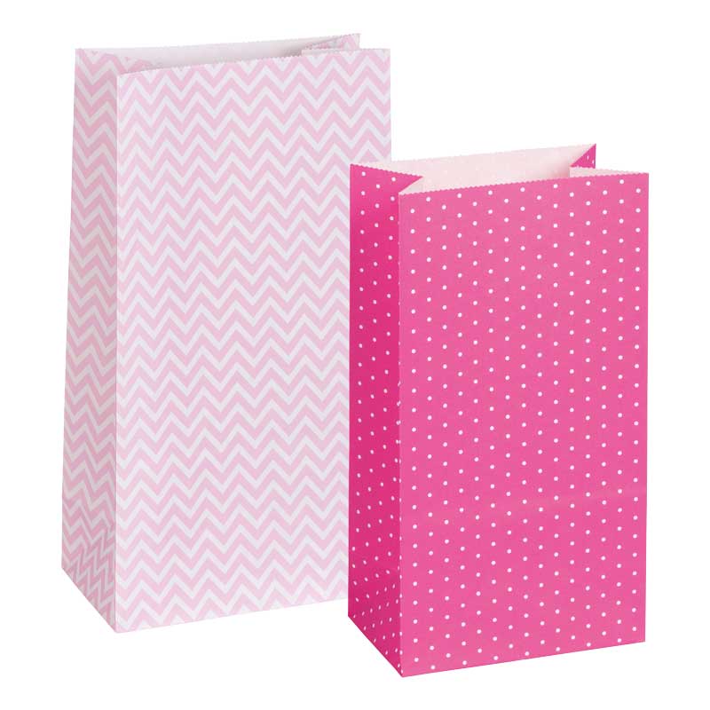 Produktinformationen "Papiertüten - Set, 12 Stück - rosa / weiß"