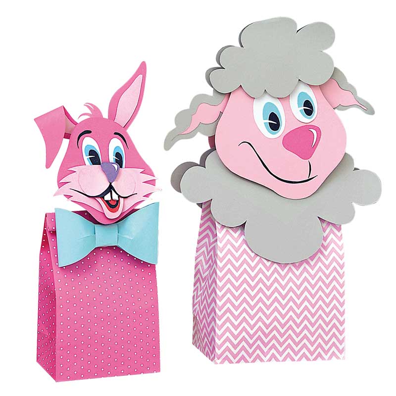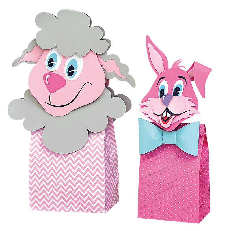 Papiertüten - Set, 12 Stück - rosa / weiß