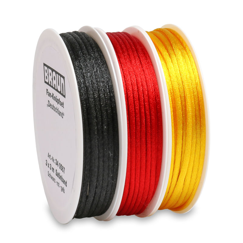 Satinkordel 3 mm / 3 x 3 m — schwarz/rot/gold