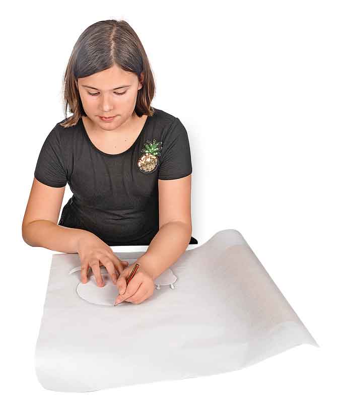 1. Motiv spiegelverkehrt auf die Papierseite von Vliesofix® abpausen oder aufzeichnen und grob ausschneiden.