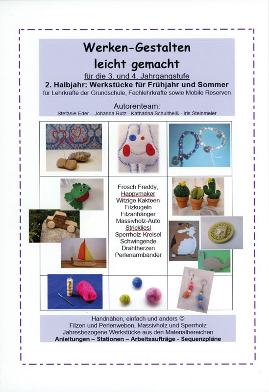 Es bietet sich an, jahresbezogene Werkstücke, mit Hilfe der einzelnen Material- und Lern-Bereiche, zu erstellen. So würde sich der Schlüsselanhänger aus Filz als auch das Perlenarmband für den Muttertag anbieten. Gerne können Sie Karten für den Mutter/Vatertag in Verbindung mit dem Fach Deutsch und Kunst fertigen.